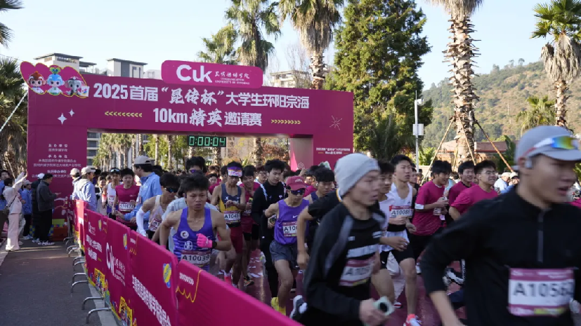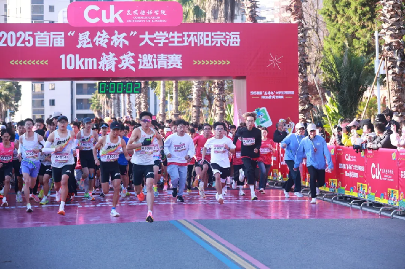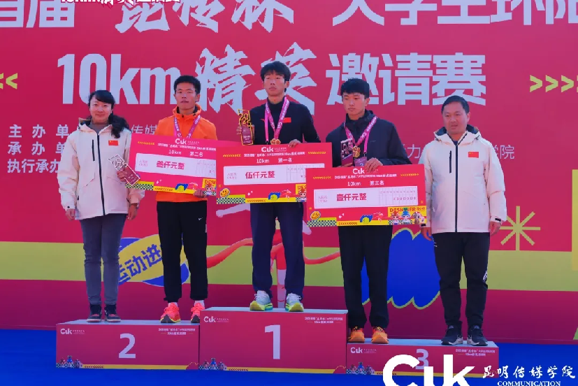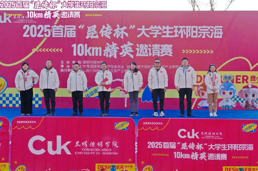 为深入贯彻落实体教融合发展战略,大力弘扬体育精神与爱国主义情怀,充分展现当代大学生昂扬向上的精神风貌,12月20日,由昆明传媒学院主办,共青团昆明传媒学院委员会、昆明传媒学院新活力体育产业学院承办,云南行知探索体育文旅产业有限公司执行承办的2025首届“昆传杯”大学生环阳宗海10km精英邀请赛圆满结束。